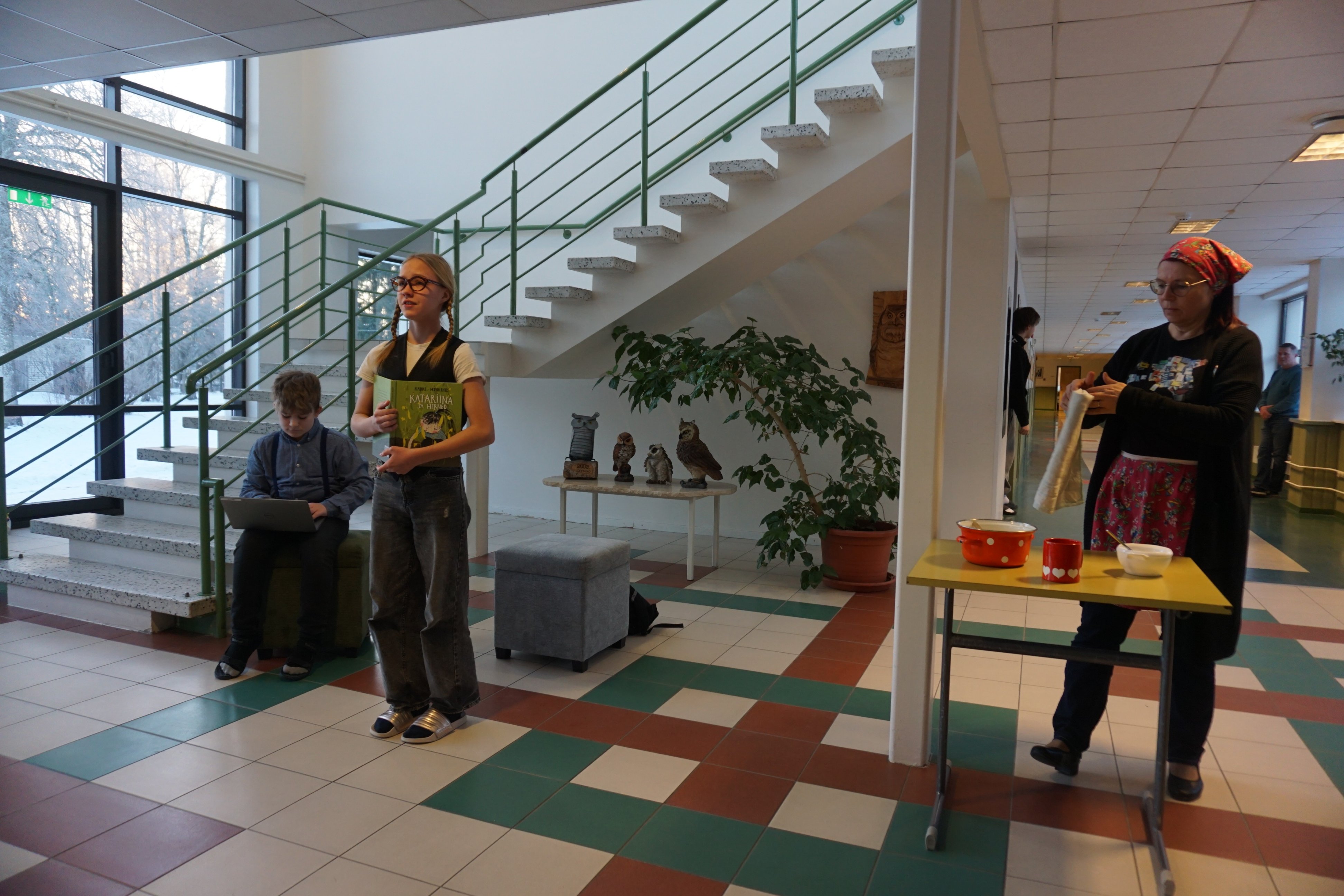 Seejärel lahendasid õpilased lühiviktoriini ning 3. tunni alguses lugesid õpilasesinduse liikmed klassides ette Tammsaare kirjandust.